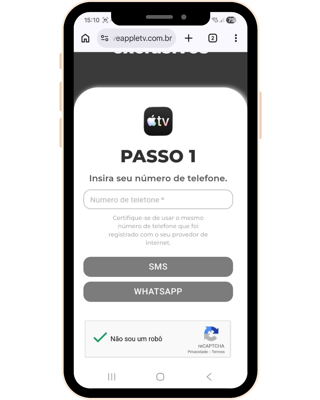 Abaixo, Passo a passo ativação AppleTv